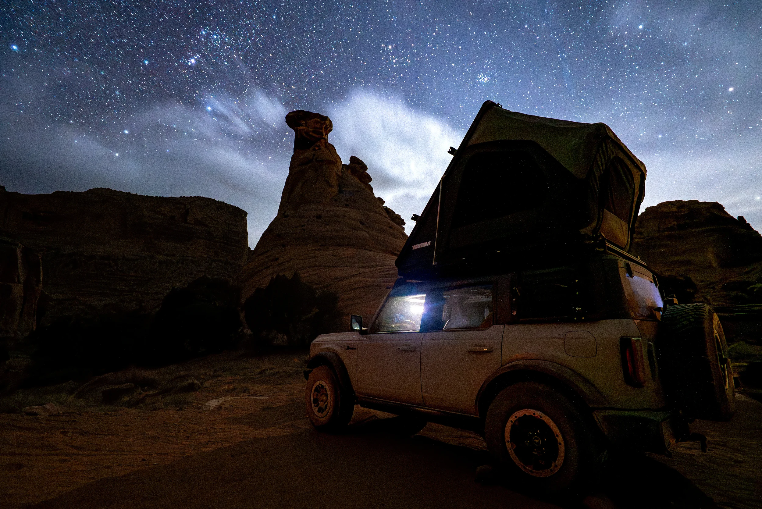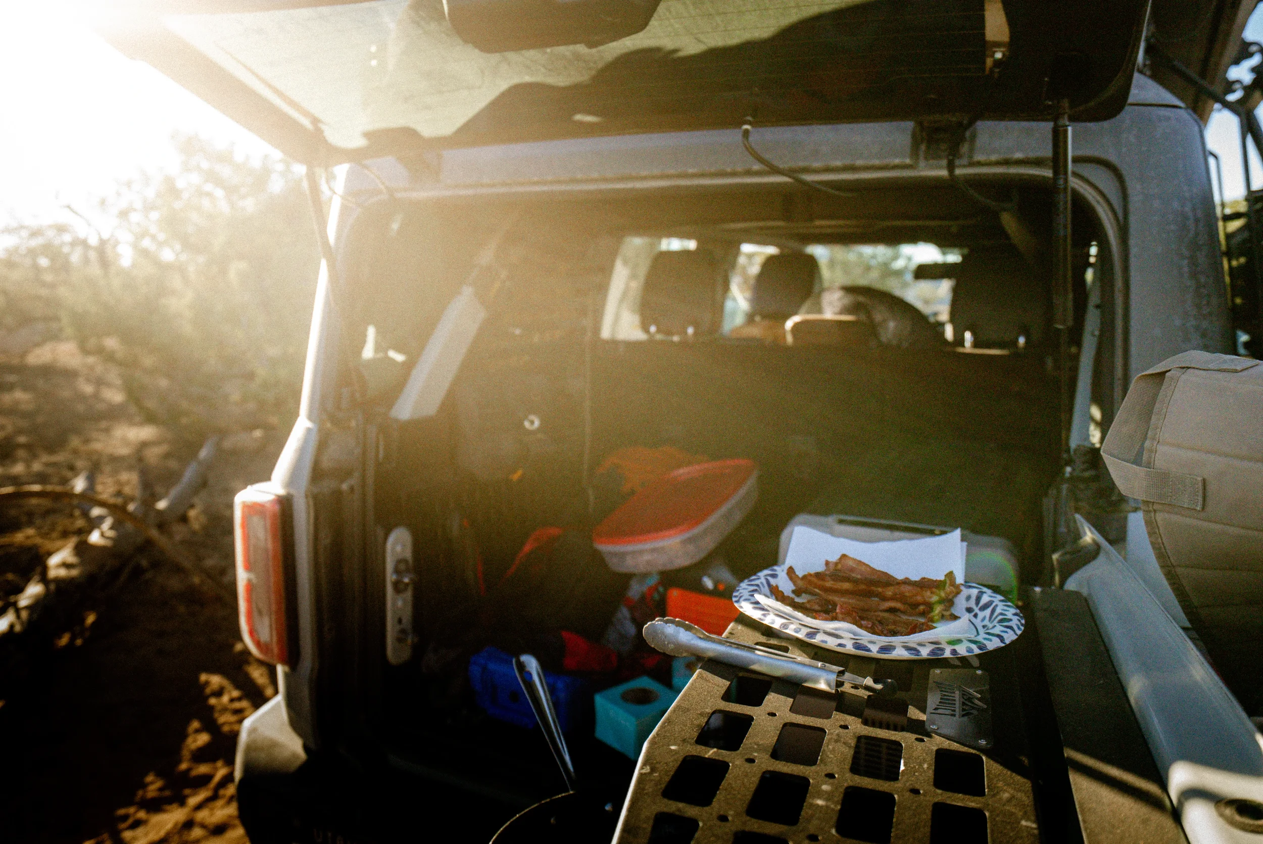 As I crawled into the tent, my sleeping pad hissed as it went flat. I knew I was in for a man-maker of a night. I fought it for an hour before the rock in my ribs did me in. Defeated, I grabbed my pillow and headed to the truck. With the seat reclined and all my gear smashed into one corner, I ate another donut for company morale before wrapping up in a stolen Delta Airlines blanket.