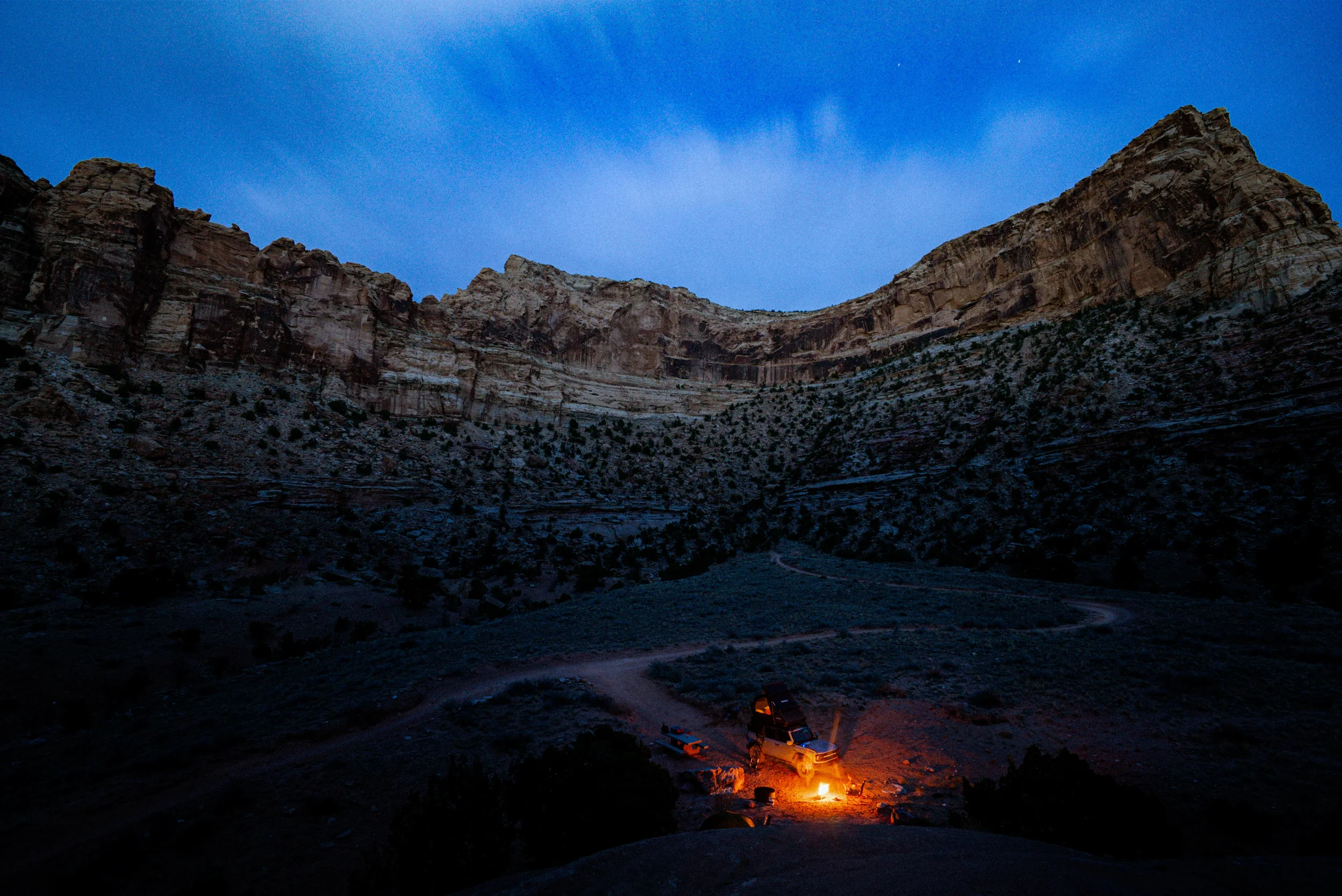 Morning broke, bacon was made, and we hit the road. We spent the morning exploring Buckhorn Draw, immersed in an almost spiritual history. The layers of rock, dinosaur tracks, and ancient art provided a sense of connection to something bigger.